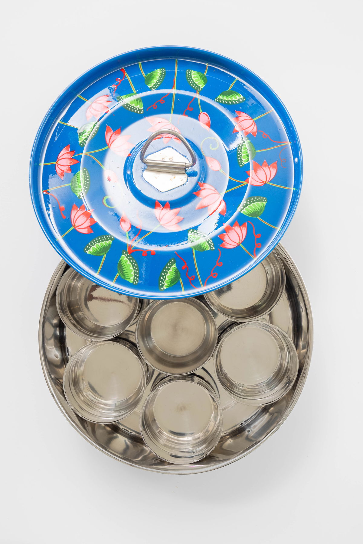 - Exclusive Design: A one-of-a-kind lotus masala dabba, hand-painted by artisans in India.